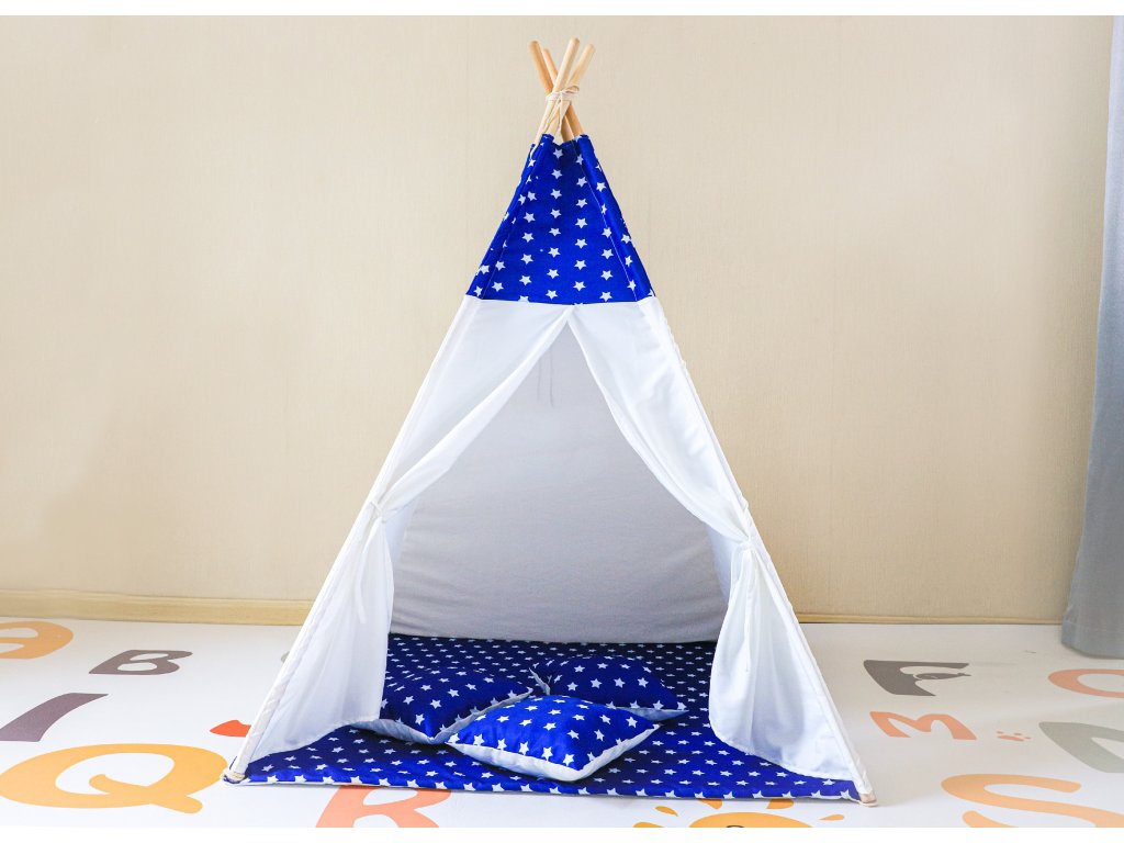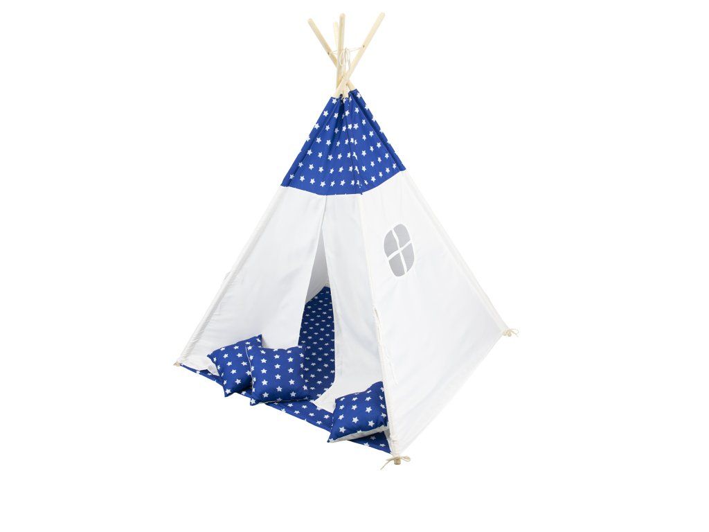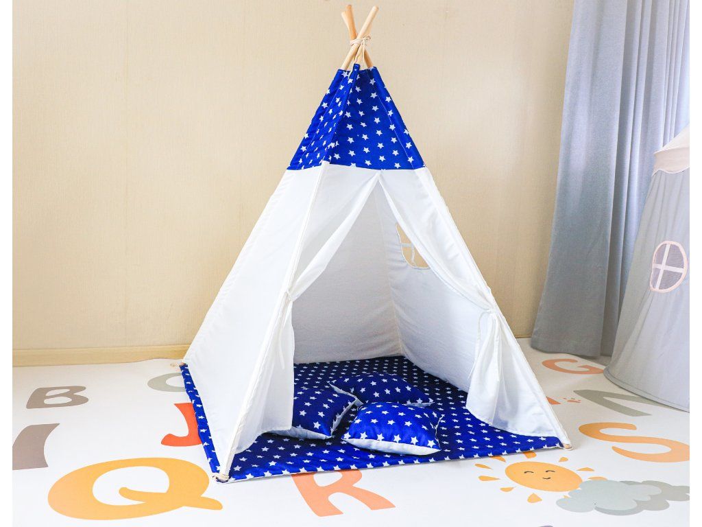 Detský stan TEEPEE Modrý s hviezdičkami a vankúšmi