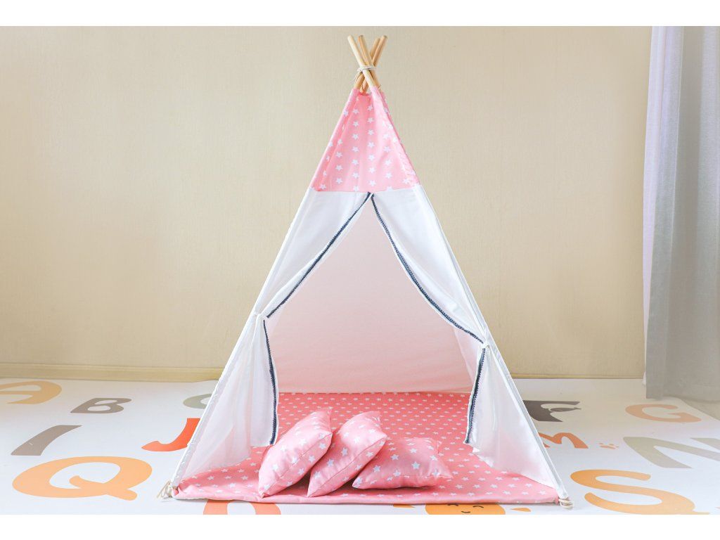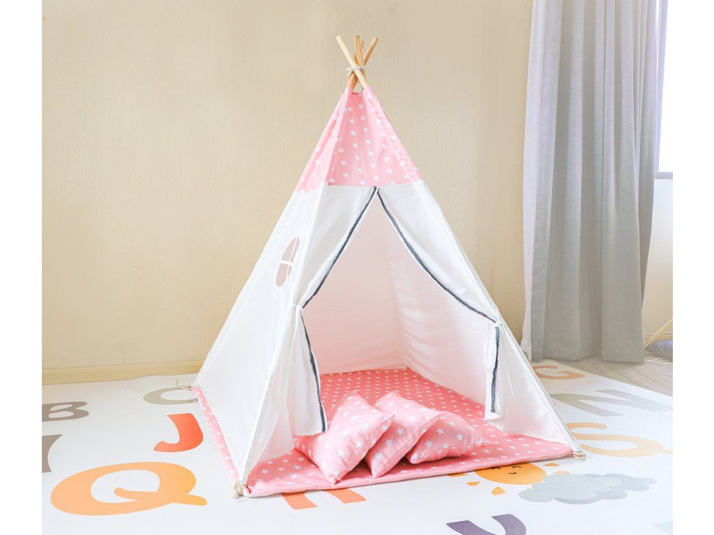Kvalitný detský stan teepee so sadou vankúšov a oknom. Teepee je vyrobené v modernom štýle, ktorý povzbudí každé dieťa k hreJe vyrobená z najkvalitnejších materiálov a je bezpečná pre deti. Okrem toho neobsahuje žiadne vyčnievajúce alebo ostré prvky, ktoré by mohli dieťa zraniť