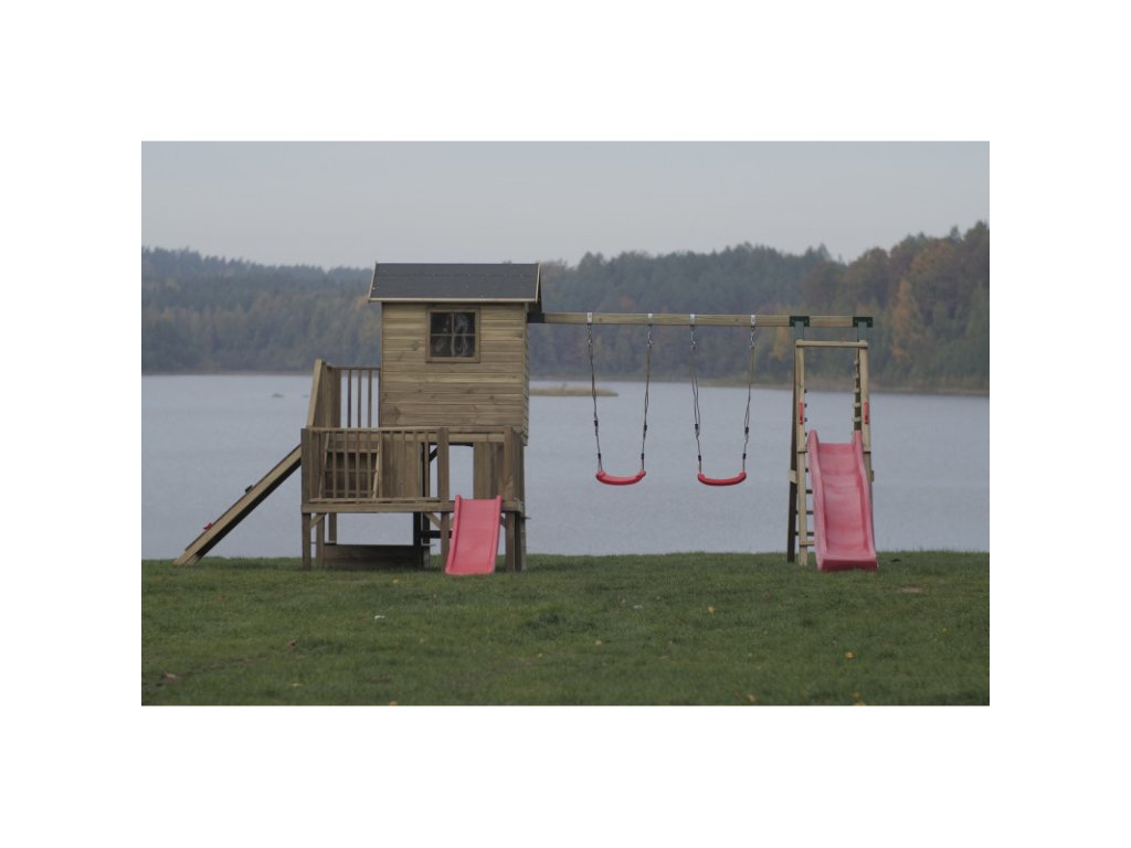 Modul HEKTOR E - doplnok pre detské domčeky 2 hojdačky a červená šmýkačka